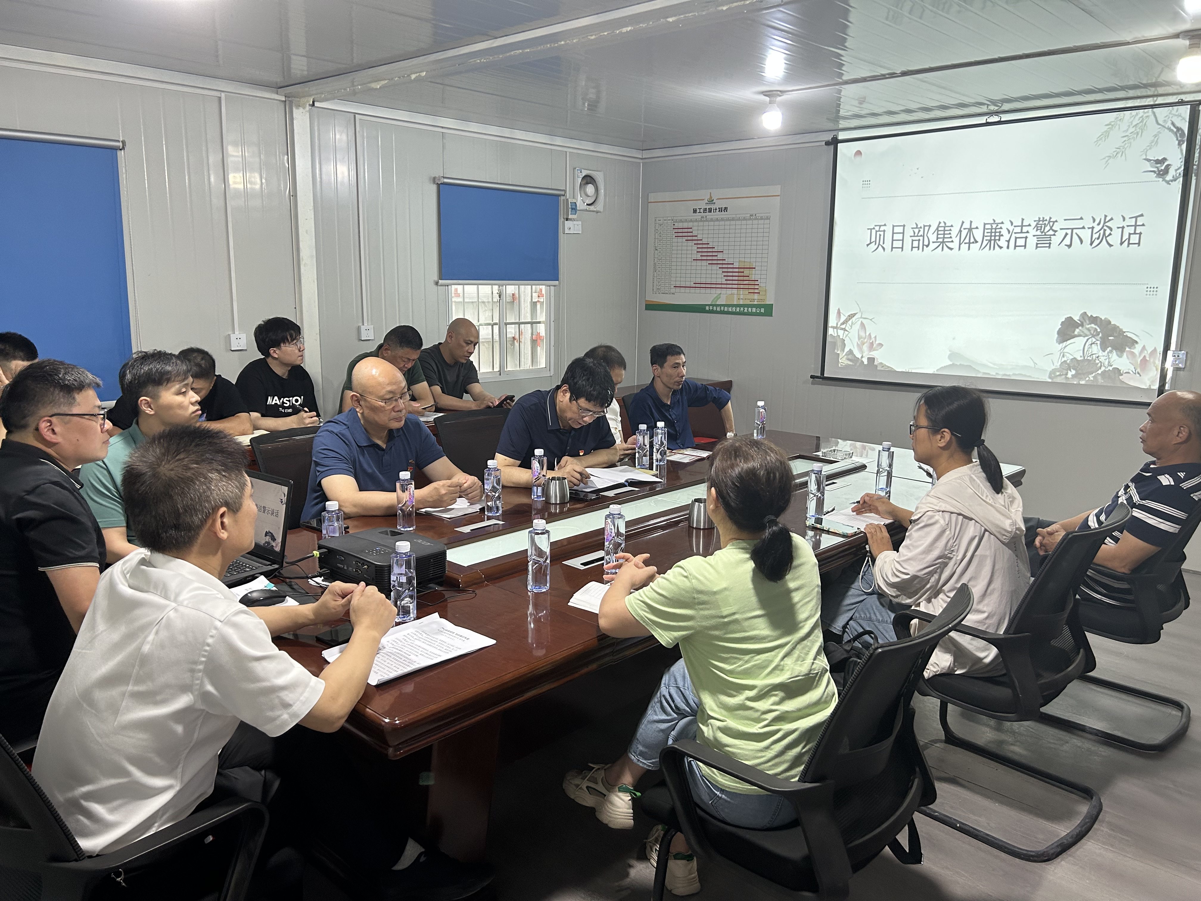通過上警示教育課、觀看警示教育片、開展項目廉潔談話、簽訂廉潔從業(yè)責任書,讓項目一線員工深刻認識到廉潔紀律在工程建設中的重要性,大家紛紛表示要以忠誠干凈擔當?shù)膬?yōu)良作風深化拓展“三爭”行動、細化實化“五增”目標,努力踐行“建精品工程,樹廉潔新風”的清風正氣,切實打造“清廉土發(fā)”。